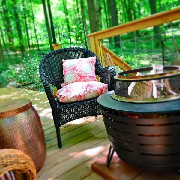 Forget campfire beans flavored with ash and dirt. With the fully furnished kitchen at our glampsite, you can enjoy an intimate meal for two seated civilized at the dining table. The cork is popped, aromatic spices fill the air, and romance sparks. The crackling fire roasts your marshmallow dessert to a crispy-creamy caramel. You feel all at once at ease, revived, transported to a distant place, immersed in another time.